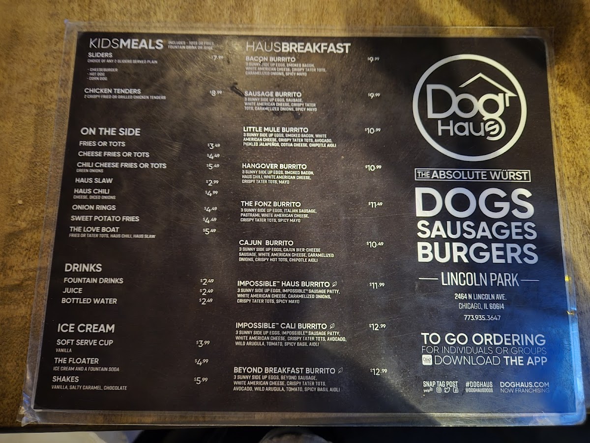 haus chili, cheese sauce & onions atop our proprietary creekstone farms hormone- and antibiotic-free premium angus all beef dog; on grilled king’s hawaiian rolls